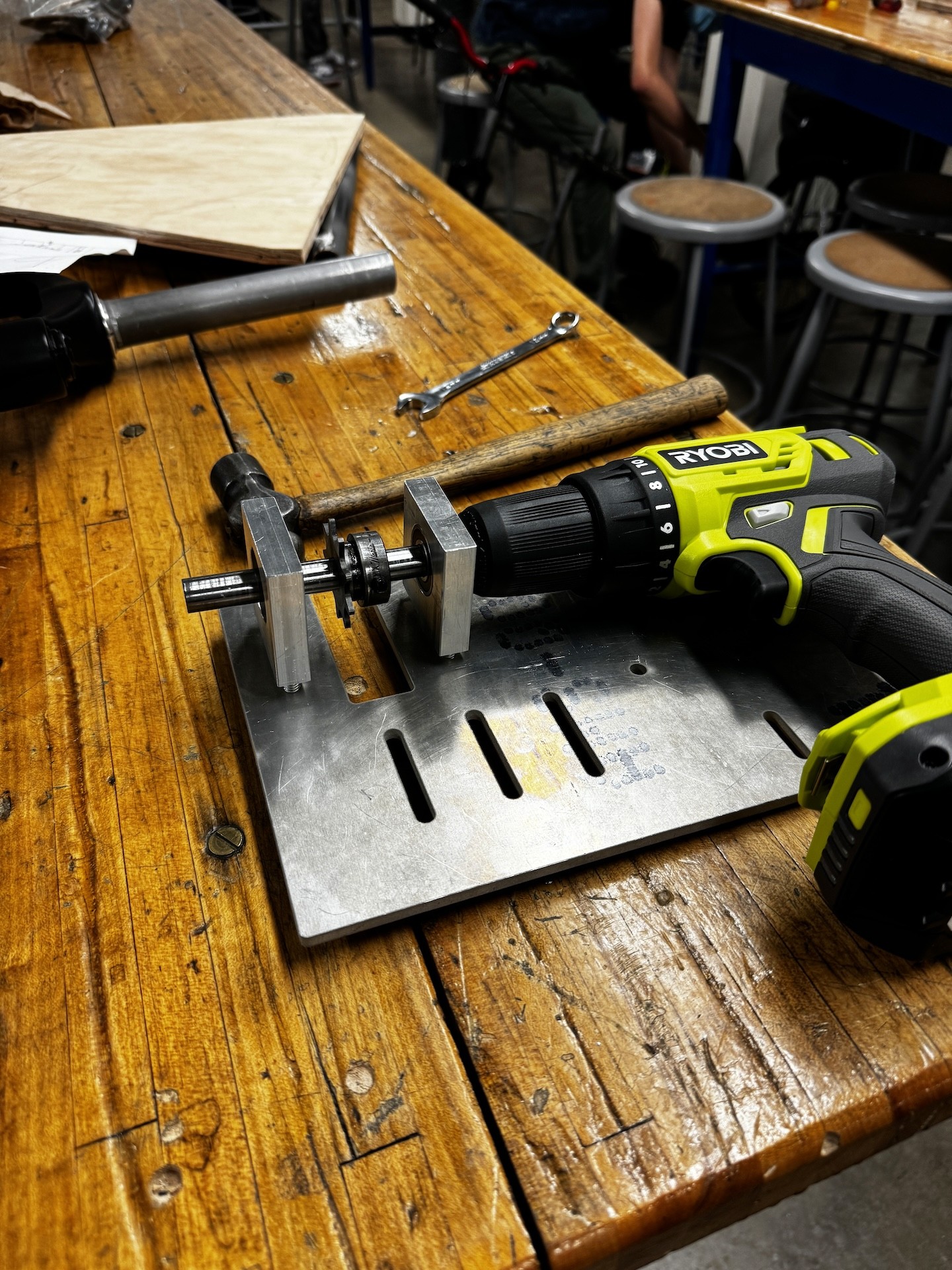 I led the manufacturing process of our bike, delegating tasks to teammates and manufacturing the supporting components for our drivetrain. I machined our pillow blocks and press fit the bearings to hold our axle. I also designed and generated the files for our drill plate.